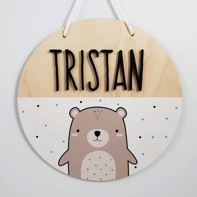 Tablica z imenom je izdelana iz lesa, katerega potiskamo v živahnih, obstojnih barvah. Če želite, lahko na dekoracijo za vrata dodate drug napis, ki ga bomo personalizirali po vaši želji. Prepričani smo, da bodo tudi vaši sosedi sigurno opazili vašo domiselno dekoracijo.